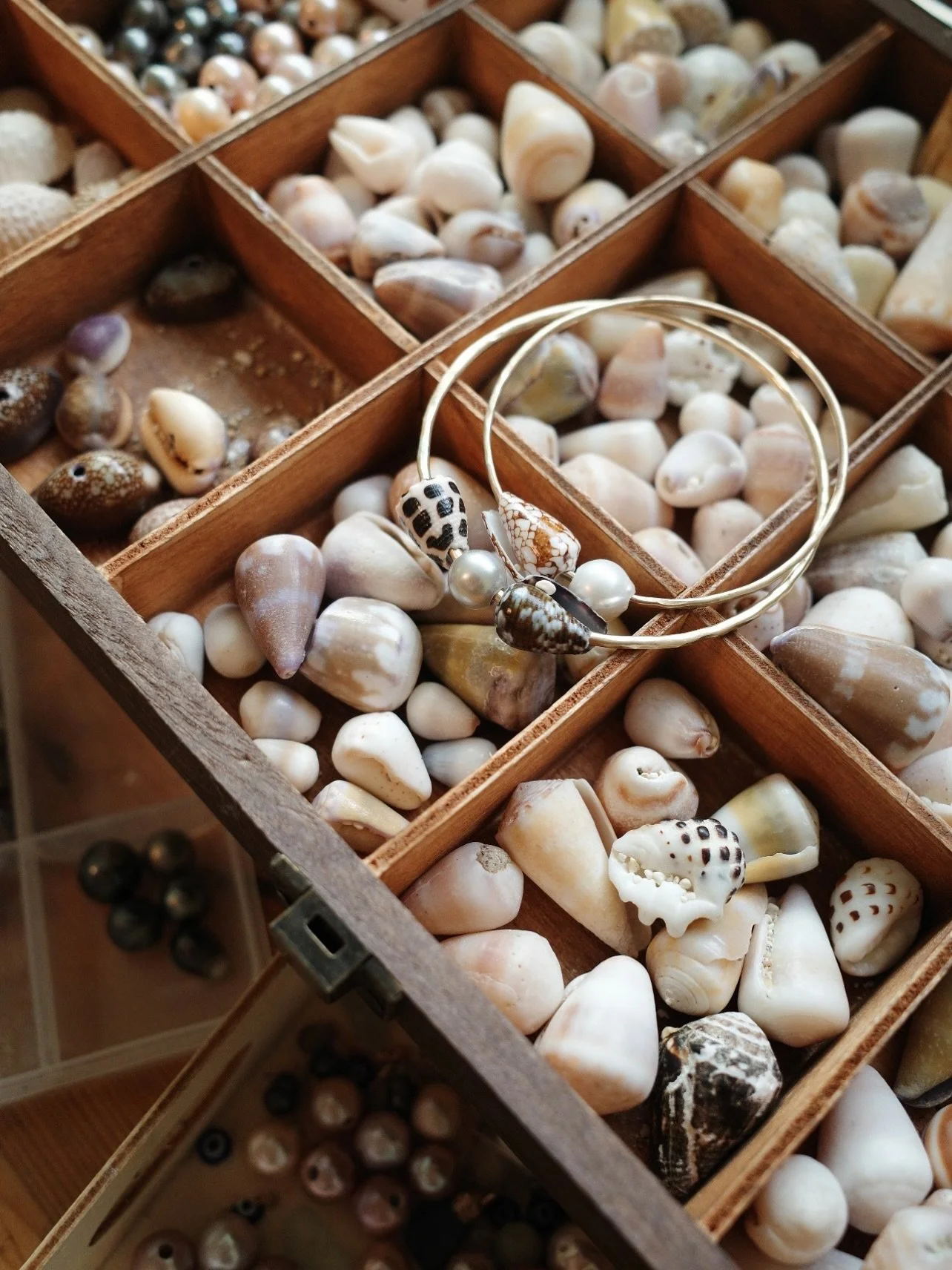 Pick out your own shells, glass, and pearls for a completely unique bangle making experience. No premade bangles here!